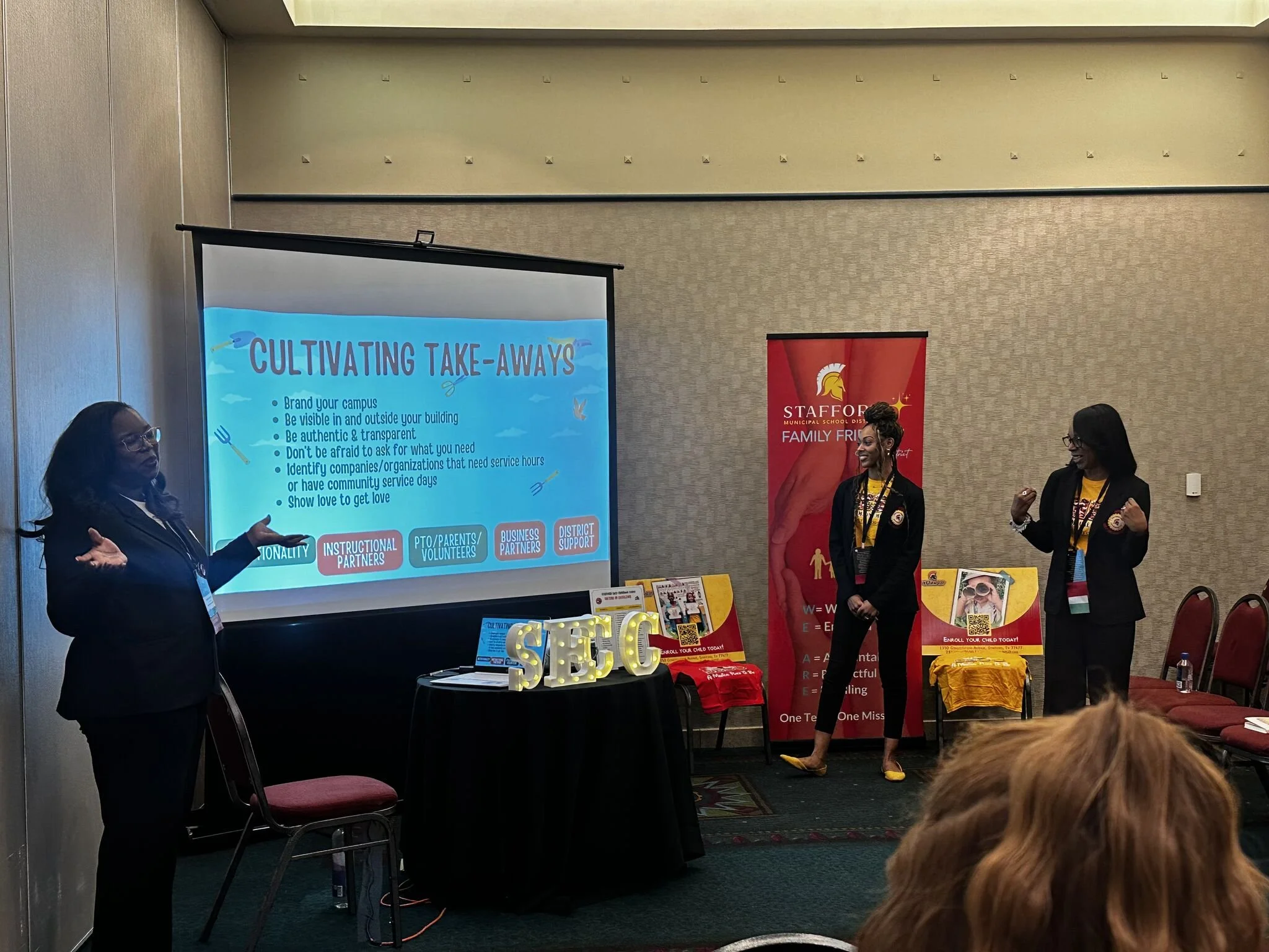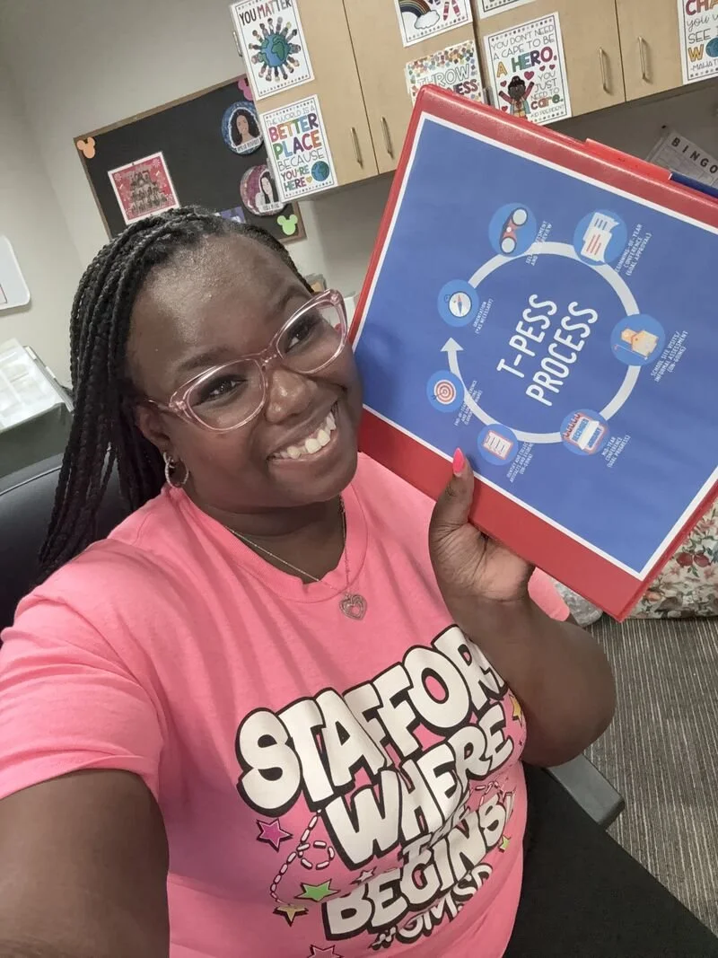 Proudly passed the torch to the phenomenal Stacy Lee who is Stafford MSD's District Content Curriculum Specialist for PK-2 Reading Language Arts! Standing with us is the equally phenomenal Tierra Martin, District Content Curriculum Specialist for PK-5 Mathematics.