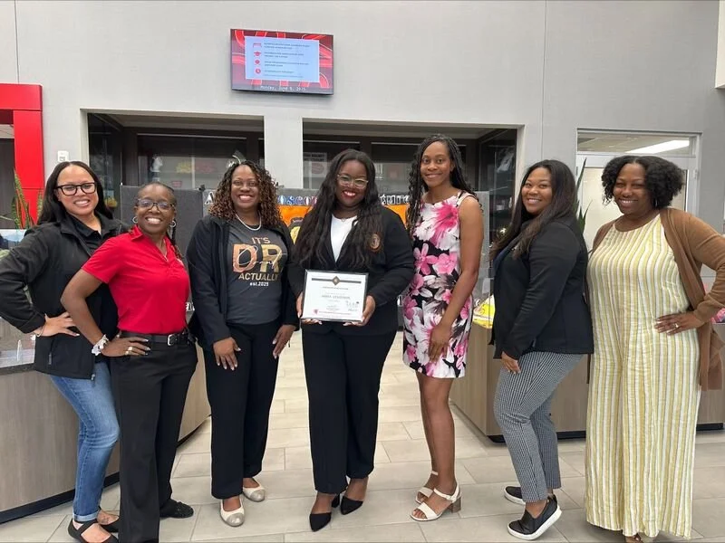 SECC PTO President, Joyce Wilkins and I accepting a donation from the Mu Kappa Omega Chapter of Alpha Kappa Alpha Sorority, Inc. at the conclusion of their Financial Literacy Symposium.